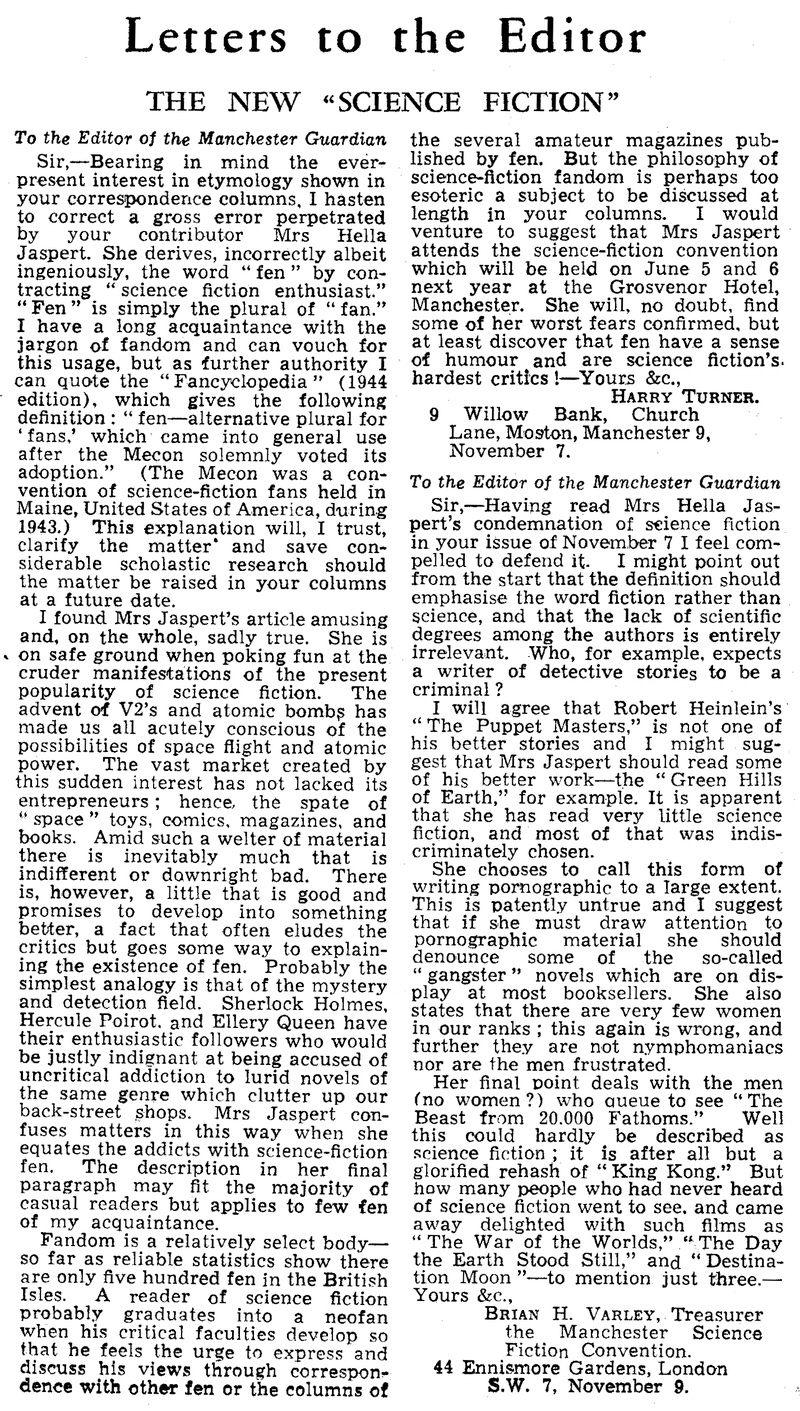 In 2013, he recalled in an email to PHT: Both Brian Varley and Frances Evans, before their marriage, became part of the international league of visiting members of the Romiley Fan Veterans & Scottish Dancing Society, which grew around Harry Turner & Eric Needham's fanzine Now&Then.