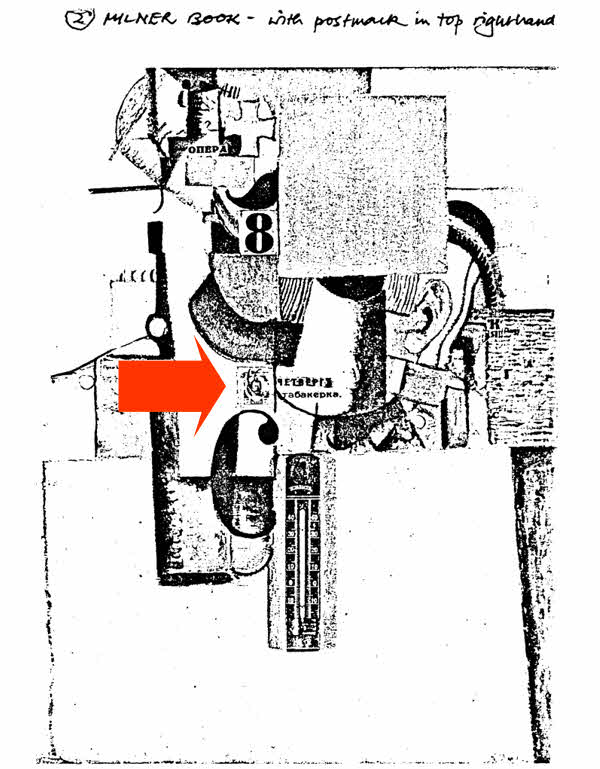 Indeed I had: in John Milner's Russian Revolutionary Art, published in 1979. On comparing these two illustrations I spotted something completely unexpected. The colour version showed a stamp with a different postmark, a lighter cancellation centred toward the top righthand corner of the stamp.