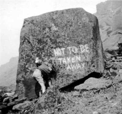 Opening up the Secret Archives of the long-defunct Manchester Interplanetary Society reveals that in 1938, aspiring astronaut and enthusiastic Youth Hosteller Harry Turner discovered a large chunk of Martian meteorite on the lonely slopes of the Pennines. The present whereabouts of this unique specimen is unknown... We thought you would like to know that... © Harry Turner, 1998. |