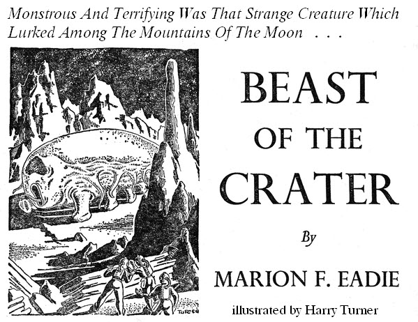 Is there life on the Moon? Very doubtful, say the astronomers. But our new author, herself a keen amateur astronomerand, incidentally, the first woman writer of science fiction we have had the pleasure of introducing to our readershas other ideas. In this, her first story, she has imagined a truly alien creature which might yet exist on the airless satellite, and at the same time, has formed another interesting theory to account for the much-discussed Lunar craters. We fancy you will look forwards eagerly to more of Miss Eadie’s tales, after having read this one.