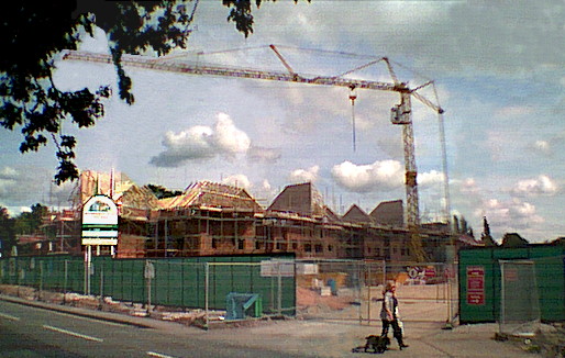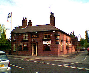 The Welcome To Romiley signs at the western end of the village, opposite the Duke of York pub, exhorts motorists to drive carefully. This sign on the left side of the road has been belted, but good, by some dozy driver! The right-hand support post, in this view, leans toward the camera and the top-right corner of the sign in bent toward the camera relative to the rest of it.