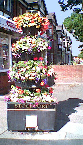 ![]() | 10: Putting the flowers out. The council has decided to brighten Romiley up even further by adding summer flowers to the ranks of shiny new black lamp posts. |