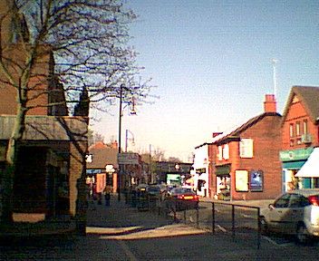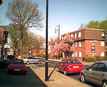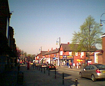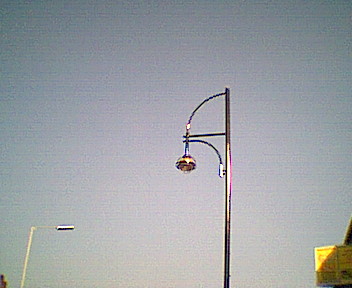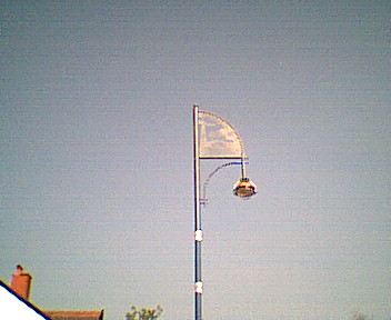 5c. Here is a comparison of the plain and fancy types of lamp top. The device on the fancy ones has ROMILEY in an arc around a cut-out image showing St. Chad's and the canal bridge, along with some pom-pom trees. Also, there is a girder structure at the bottom of the design, which is intended to represent the railway bridge (see pix 19, 27, 37 for the railway bridge in real life). Note : Marple also has the new lamp posts, but there are no fancy tops at the western end of their new lamp zone.
