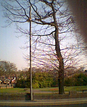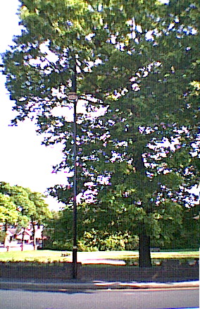 The thinking is that this lamp became invisible among the oak tree's full set of leaves. Finally, someone remembered it and sent the painters out, and they probably turned a lot of leaves black as well as the lamp, which underlines the perils of procrastination. According to a witness, the job involved hacking a lot of the tree off and leaving the bits lying all over the pavement. |
