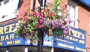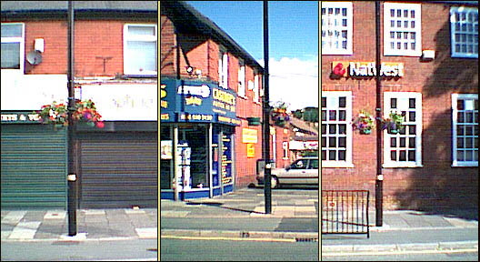 The council has decided to brighten Romiley up even further by adding summer flowers to the ranks of shiny new black lamp posts. There seems to be a hierarchy of hanging baskets on the village's new lamps. If the lamp is in front of a common car parts store (top, centre), only one of the baskets is filled with flowers. But if it's in front of somewhere important like an optician's (top, left) or a bank (top, right), both baskets are filled up. |