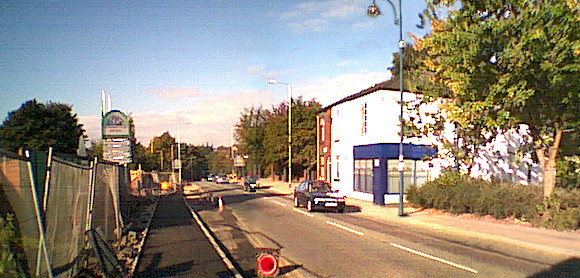 Of course, the newly topped-off pole is still wearing its white transport strips and the whole has yet to be painted in black with gold trim on the orb at the top and the street-level stripe. The area across Stockport Road has a bit of pavement now but it's still pretty much a disaster area. We seem to be getting there, but slowly. So anyone waiting for the matching lamp to be installed at this end of the zone is advised not to hold their breath! |