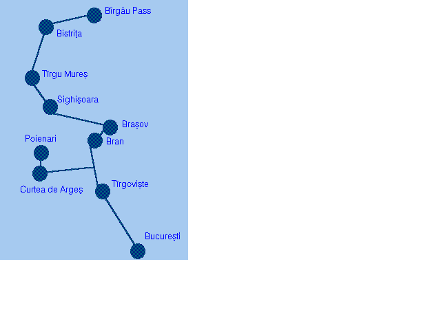 - To Bran Castle (Vlad Dracula's halting place), dating from the 14th century and the ruins of
