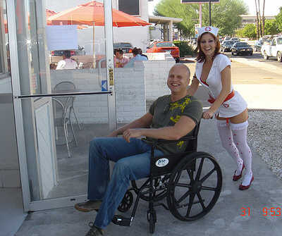 The waitresses wear the sort of nurses uniform youd expect to see in a Carry On film. Only an idiot would confuse them with a real nurse. At the beginning of September 2006, Daniel Christl, an assistant attorney general representing the Arizona State Board of Nursing, wrote to Mr. Basso to tell him that his staff couldnt call themselves nurses unless they held a licence issued by the state.